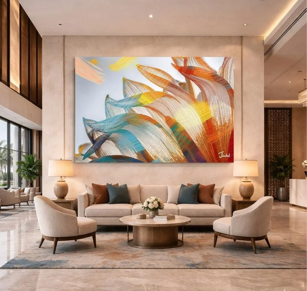 I create art for the built environment spanning custom works, wallcoverings and large-scale installations. The work is designed to integrate into hospitality, workplace and wellness environments, balancing artistic expression with the demands of scale, material and space.